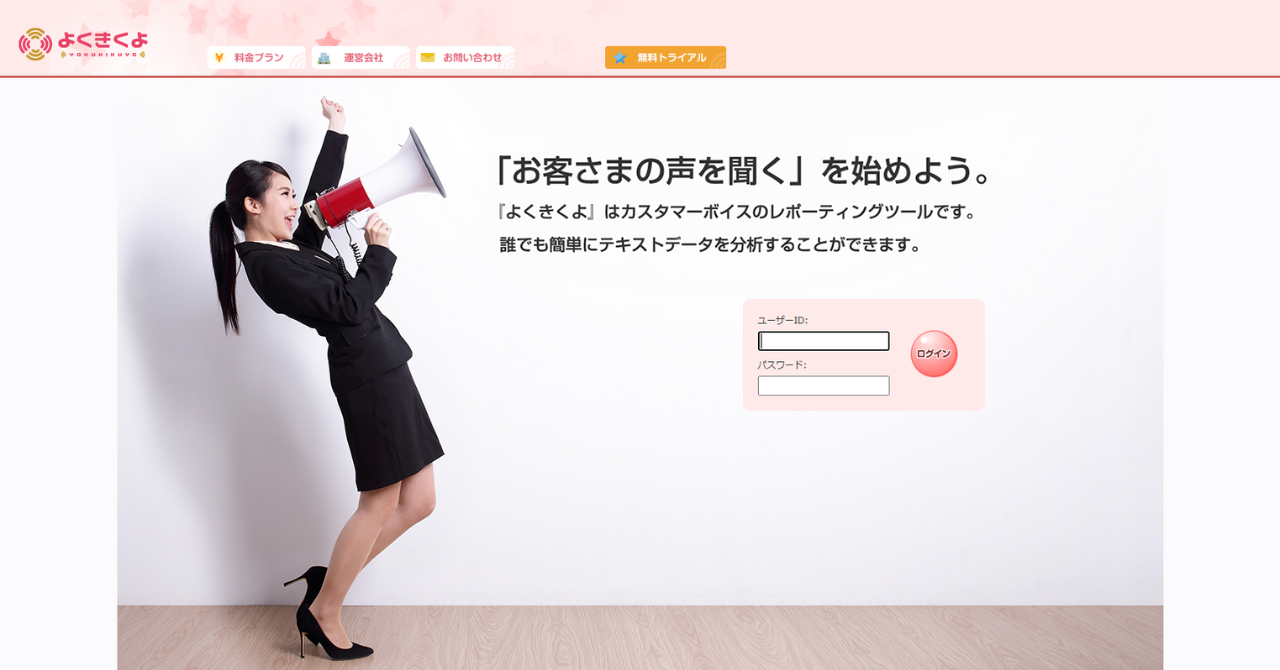 よくきくよは、カスタマーボイスのレポーティングツールです。フリープランは3か月間利用でき、月に300件まで利用可能です。もっと深掘りした分析がしたい、分析の精度を高めたい、という方には、有料のエコノミープランやビジネスプランもあります。テキスト分析に関する無料のウェビナーも開催されています。