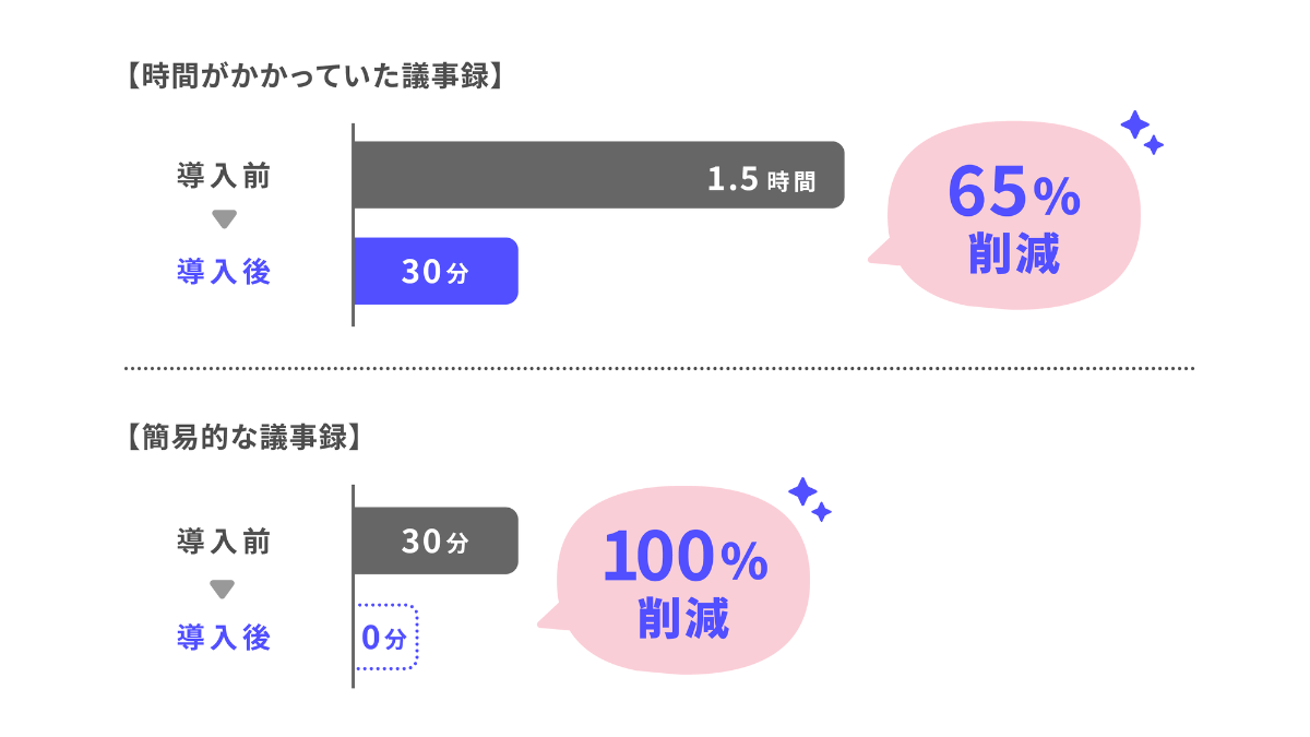 議事録の作成時間を65%削減。作成時間がゼロになった議事録もあり、対応できる商談数を増やすことができるように