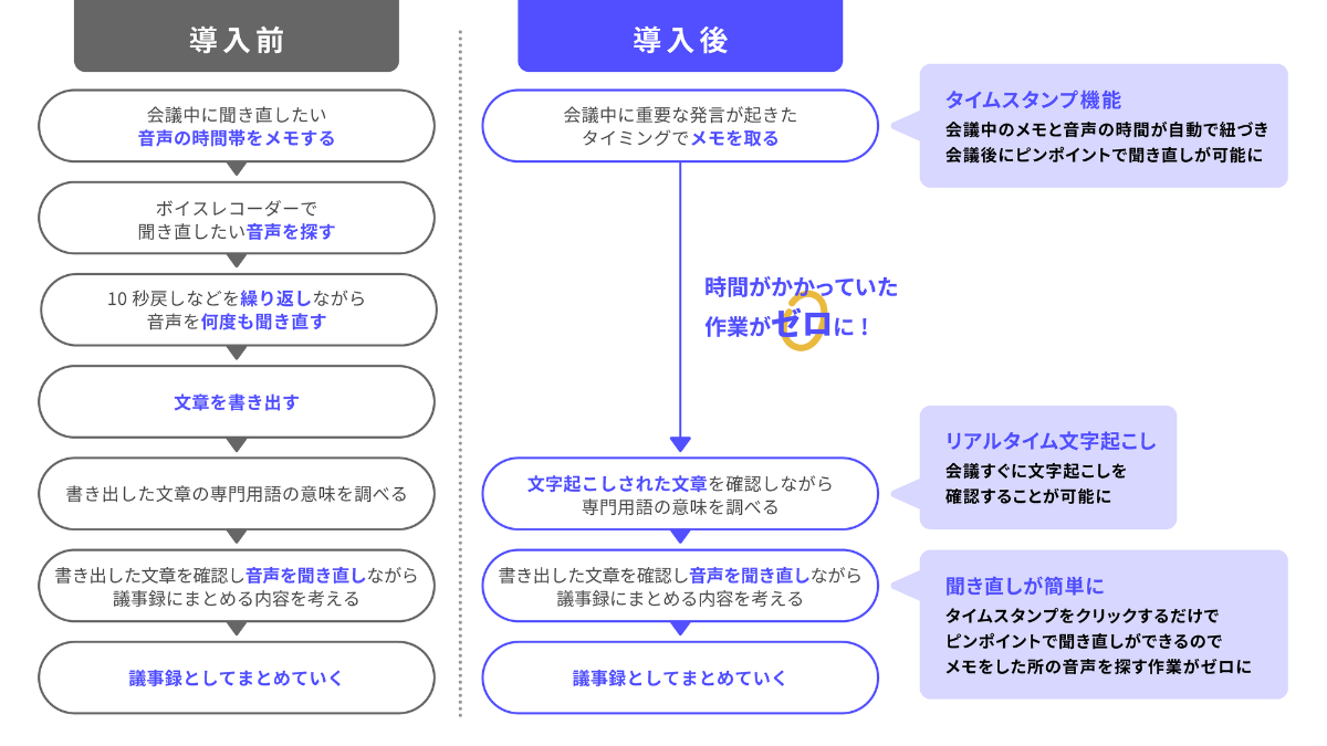 • 録音音声から必要な発言を探し、聞き直すのに時間がかかっていた