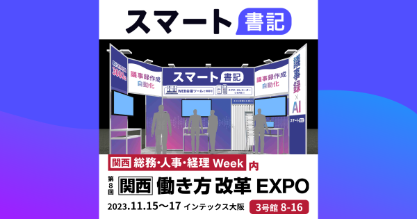 議事録作成を音声とAIで自動化するAI議事録ツール「スマート書記」「第8回 関西 働き方改革EXPO」出展のお知らせ